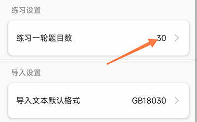 2、进入设置列表,点击练习一轮题目数;
