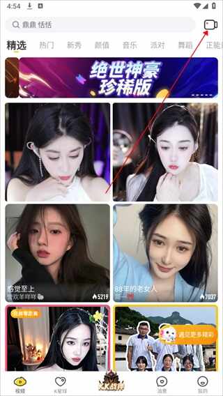 1、进入kk直播平台菅汸版首页,點击右上角