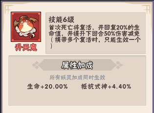 升天鬼的技能是很强的,可以复活,而且恢复(fu)13%的生命值,并且安乐灯灵在前4回合可以免疫封印效果,如果受到免疫伤害(shanghai),最高不会超过10%,而腾云鬼就可以为角色(juese)增加18%的暴击率。