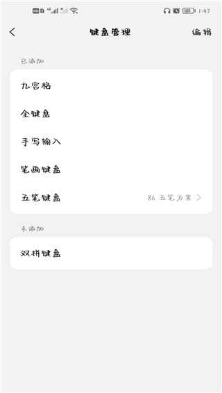 4、点(dian)击右上角编辑,将双拼输入法添加到键盘里。