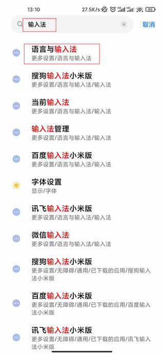 2、途径搜索输入【输入法】,在功能中选择【语言与输入法】;