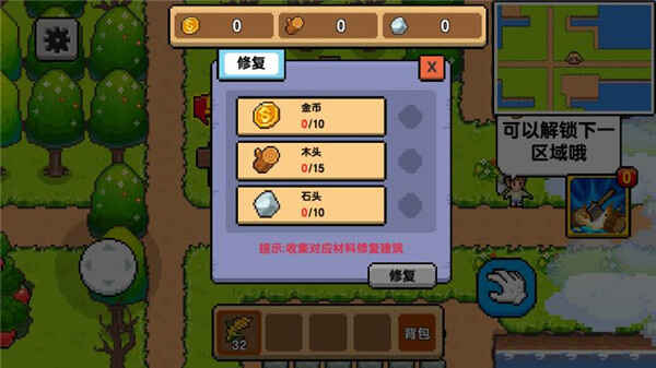 3、用钱来解锁新的地图和街区,收(shou)集修复旧设施所需的材料。