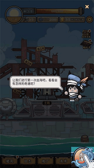 2、玩家每次出海都会遇到不同的攻略与困难,需要在耐久度为0之前返回。