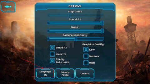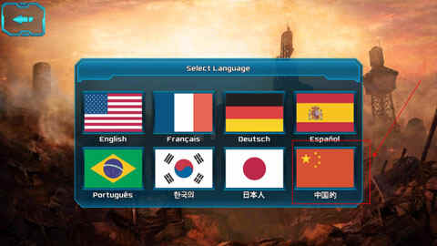 首次进入游戏后,请打开选项“Option”,在点击(dianji)“Language”语言栏,如下图箭头所示。