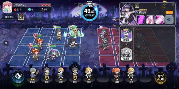熟悉自走棋的玩家可能会觉得很熟悉,没错,战斗准备阶段就是用(yong)来购买角色、合成角色的。和自走棋不同的是,传统(chuantong)自走棋是相同角色合成进行升星,而阿尔卡纳是两两角色(也有三个合成的)合并升星。初始角色就有8种,通过两两合成进行升星,最高提升到五星,是的,最后会和出非常多的五星角色。战斗准备也可(ke)以(yi)购买道具,出售道具等一些操作,可(ke)以(yi)增加场上人数及其他的提升,这些游戏里慢慢发现就好,不再一一描述了。