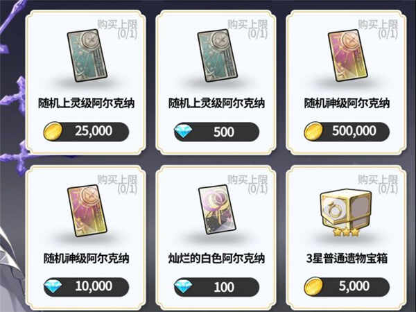 这可是个好东西,除了常规都有的游戏礼包外,还有一个杂货店的地方。杂货店里你可(ke)以(yi)购买很多东西,用金币和钻石购买的东西都会出现,会有五星角色、神级阿尔克纳等,只要资源够,放心买买买,一点都不亏。
