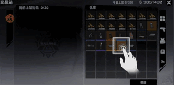 5、您也可以在仓库点击物品(wupin)出(chu)售按钮,选择交易站上架(shangjia)寄售