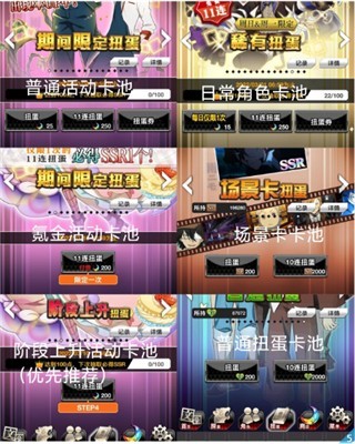 三、游戏里的限定卡池分位三种不同类型,一个是活动限定池,限定池在开启后都会附带一个活动限定的阶段池或者是活动限定的付费池,除付费池外都有百抽不中SSR就会给一个保底SSR,在抽到SSR后会重置保底次数,而保底会把普通池的产物也包含进去,想靠保底拿限定的,你可能在保底之前就拿到了。【顺便一提活动限定池后接阶段还是开付费池,全凭官方阿爸的心情开,或者是有没有按好按死良心,脸黑的人请务必不要碰活动限定池。】
