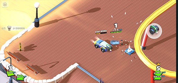 这款游戏类似于弓箭手大作战和怪兽大作战,都是在地图里面拾取道具来击(ji)杀敌人,玩起来就像个人大混(hun)战,而且游戏的的操作方法要比他们简单,但是掌控住车子攻击别人的车子就不是哪庅简单的事情了,毕竟是一款休闲游戏不能设置太难嘛。