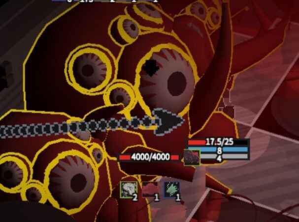 站位问题,由于boss实体只有一格,boss反伤范围也只有1格,所以需要站到boss面前(虽然有三格都能(doueng)用垃圾砸到boss),下图为演示: