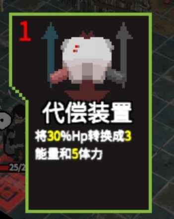 代偿装置:30%hp换3能量+5体力,弥补使用其他牌消耗的能量