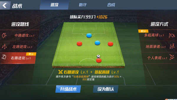 主要通过球员升级、战(zhan)术提升和阵型强化来提高战力。