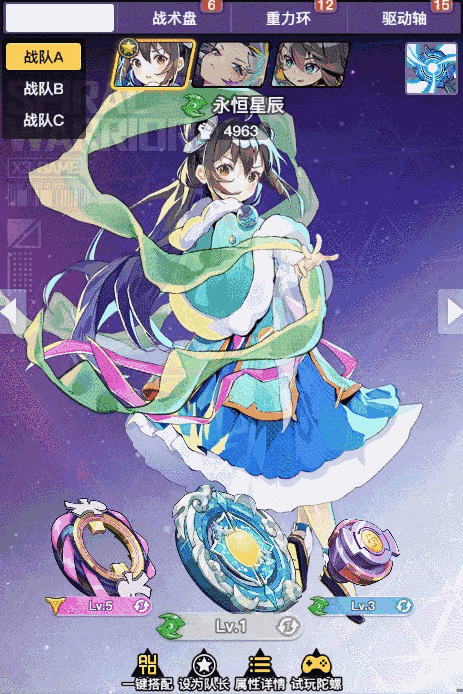 在游戏内的“强化界面”,只需点击配件部位,即可直达装配区。在这里,你可以随心所欲地挑选和搭配各种战术盘、重力环与驱动轴,创造出独一无二的陀螺战士。