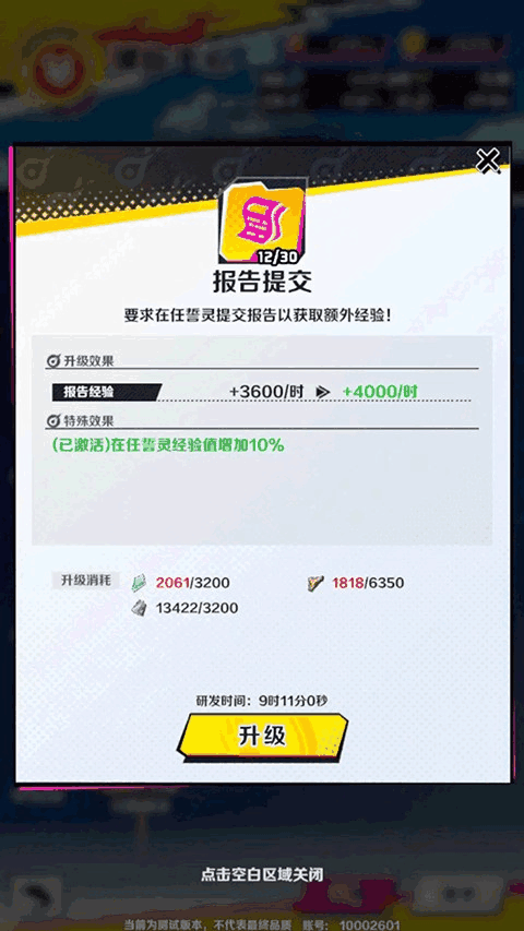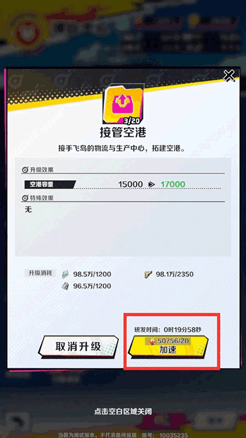 每次升级除了需要消耗资源以外,还需要等待一定的时间。这(zhe)个(ge)过程也可以用一定数量的虹石进行加速。