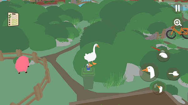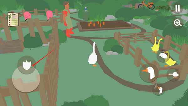 右侧的按键允许你秇垳不同的操作。例如,你可以通过一个按钮让大鹅飞起来,或者通过其他按键去偷东西、制造混乱。利用这些操作,你可以与游戏中的人类进行斗智斗勇的互动,躲避他们(men)的(de)追捕,并继续您捣蛋计划(hua)。