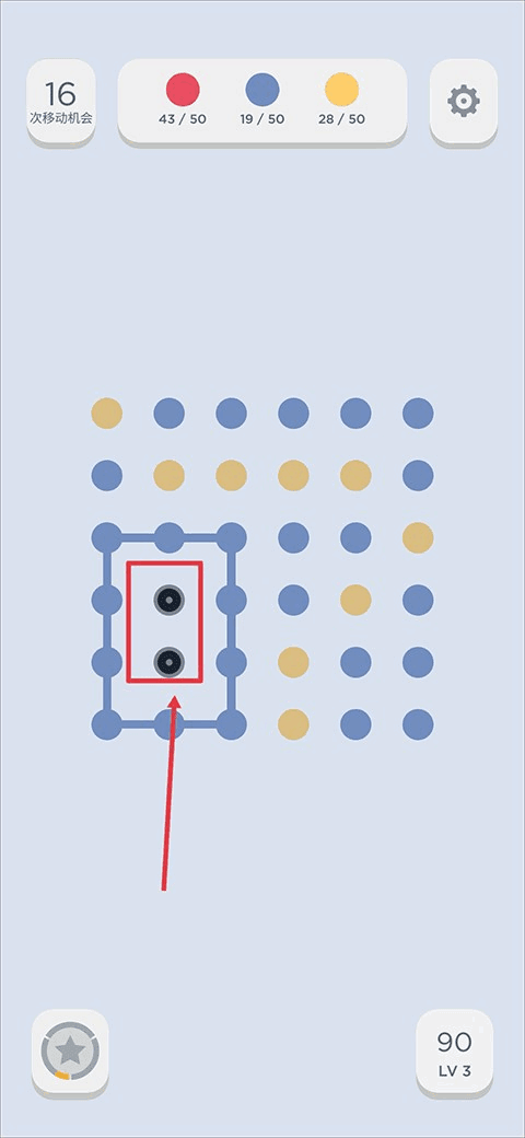 4、除了常规消除思路外,把相同颜色的点点连接成一个大的闭合图形(一般都是四个点连一个小正方形),就可以清除界面上所有通颜色的点点
