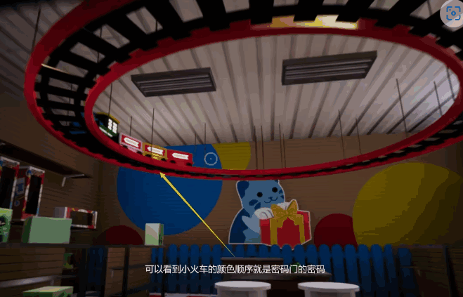 绿粉黄红(玩家可以在房间(Room)内看到火车密码的排序方式,在密码锁里根据颜色顺序输入密码)