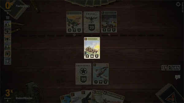 每个回合,玩家从卡组中抽取一张卡牌并加入手牌。带有黄色指挥点数字的卡牌可以立即使用,而带有白色指挥点数字的卡牌则需要更多的指挥点或满足其他条件才能使用。