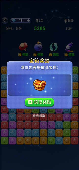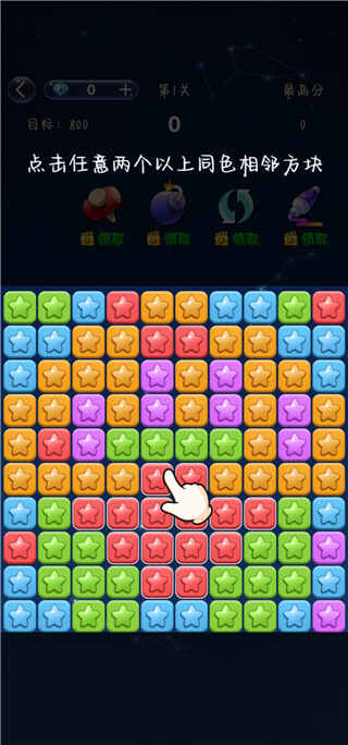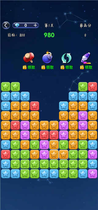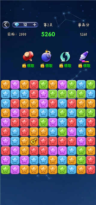 目标:消除指定数量的星星,或者达到一定的分数目标,最终通过关卡。
