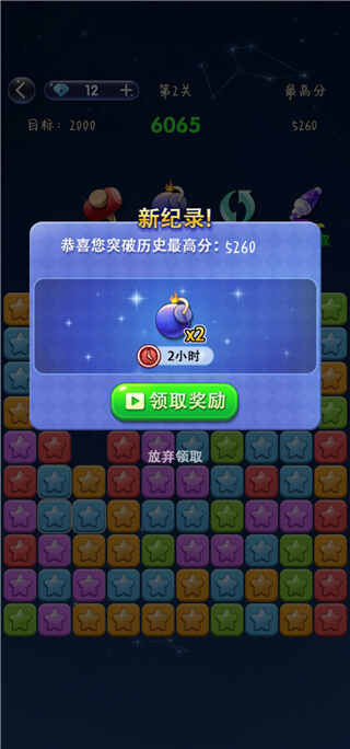 使用场景:当玩家需要快速消除多个星星时,分裂星是一个强力道具,特别适用于一些较为复杂的局面,能有效帮助提升分数。