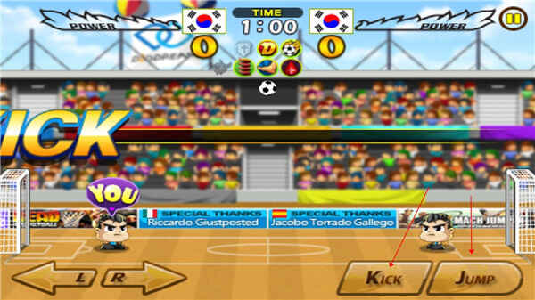 游戏控制非常直观,只需通过简单的“跳跃”和“踢球”按钮,玩家便能轻松参与到對戰中。无需复杂的操作和教程,非常适合休闲玩家。