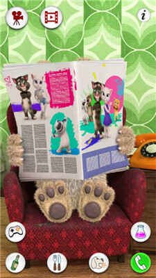 用手指戳一下本的报纸,他会合上报纸,接着你可以与本交谈,它会模仿你说的话。