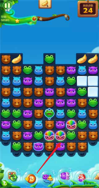 尝试将四个相同的动物头组合在一起,形(xing)成发光的动物头。通过这种组合,玩家可以创造出魔力鸟。将魔力鸟与发光动物头一起消除,可以有效清除上方的大量冰块。