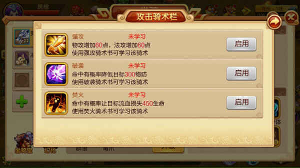 每匹坐骑天生会带有两个技能(neng),这些技能(neng)可以通过升级来提升效果。不同坐骑的技能(neng)各不相同,且无法替换。选择合适的坐骑并升级其技能(neng),能为玩家的战斗提供重要的助力。