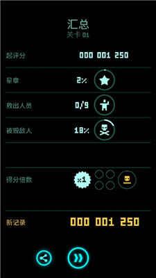 每个关卡结束时都会计算玩家的得分。为了取得更高的分数,玩家可以完成关卡中的额外任务,如拯救足够数量的人质或收集荣誉勋章等,满足关卡要求即可取得加成。