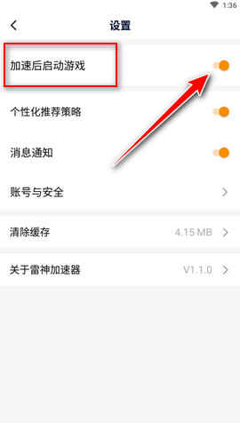 4、找到“加速后台游戏”选项,打开后面的按钮即可(can)。