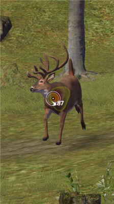 2. 当猎物出现在准星上时,松开屏幕进行射击。击中猎物的不同部位会造成不同伤害,伤害达到要求即可完成狩猎