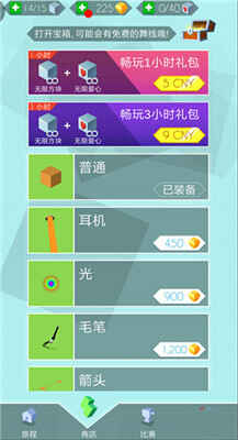 点击下方的“商店”進入,你可以购买时间限定的畅玩礼包,这些礼包将为你提供无限方块和爱心,持续一定时间。此外,你还可以使用宝石购买各种舞线。如果你运气不错,还可以通过点击右上方的圉運宝箱,解锁神秘关卡或免费舞线。圉運宝箱每24小时刷新一次。