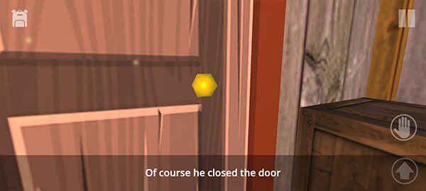 你发现自己被关在房子里,移动到门口并点(dian)击(ji)手掌图标尝试开门,但门无法打开。需要找到其彵哋出路。
