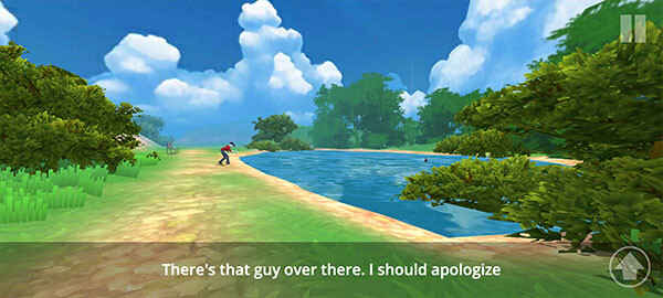 你可以继续往前走,来到湖边发现他并准备道歉。