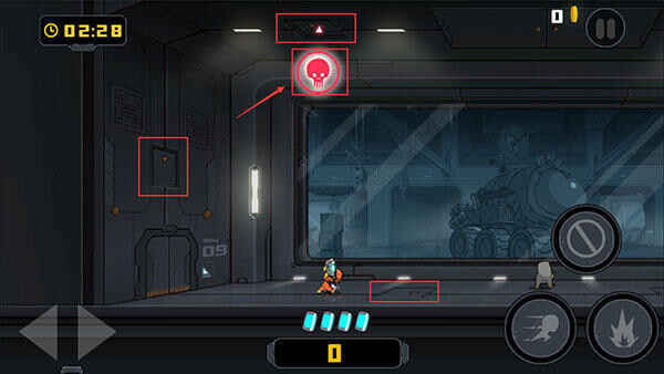 在基地中需要消灭出现的怪物,同时注意躲避它们的攻击。每个关卡有4次机会,耗尽后需要重新开始。