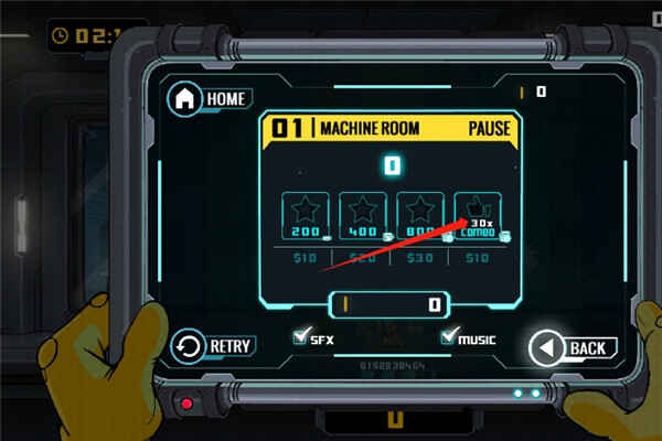 每关有额外目标(biao),例如第一关需要达到30涟击,完成更多目标(biao)可获(huo)得(de)更多金币奖励。