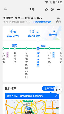 3、用户可以滑动公交线路的信息,查看更多的车站和车辆信息,便于规划自己到站的时间。