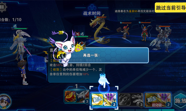 一旦点击(ji)开始战斗,进入战斗界面后,你首先需要选择(ze)技能卡。每个数码兽都会拥有不同(butong)的技能卡,确保选用最合适的技能来应对当前战斗。技能卡的选择(ze)非常重要,可以帮助你在关键时刻打出高伤害或者为自己提供防御加成。