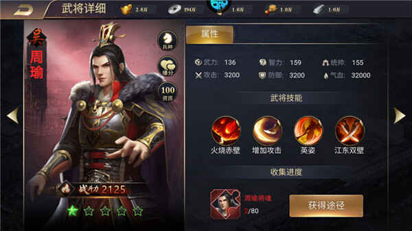获取途径:周瑜拥有出色的战略眼光,玩家可以通过招募、武将商城、困难名将副本或拜访武将来获得这一武将。