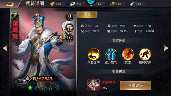 获取途径:诸葛亮是游戏中非常强力的智谋型武将,玩家可以通过招募系统获得,也可以通过武将商城或贵族商城进行购买。此外,拜访武将也是一种有效的获取途径。