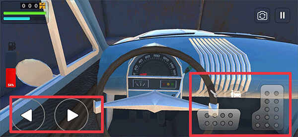 5. 进入车内后,你就能开始驾驶,左边的按钮控制方向,右边则是前进和倒车功能。