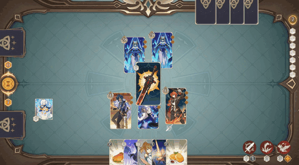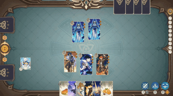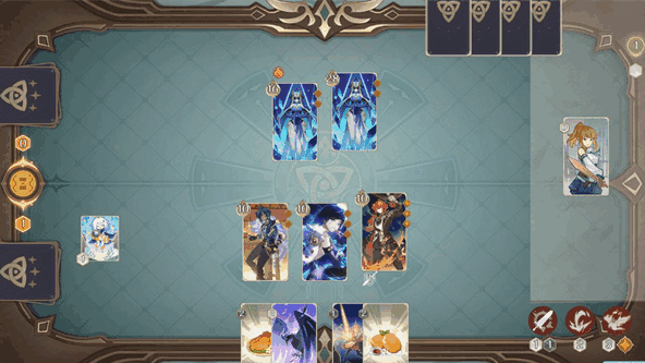 1、角色卡牌:每个角色卡牌拥有普通攻击、元素战技和元素爆发三种技能。玩家可通过与游戏内角色对局(game)并取胜来获取这些卡牌。