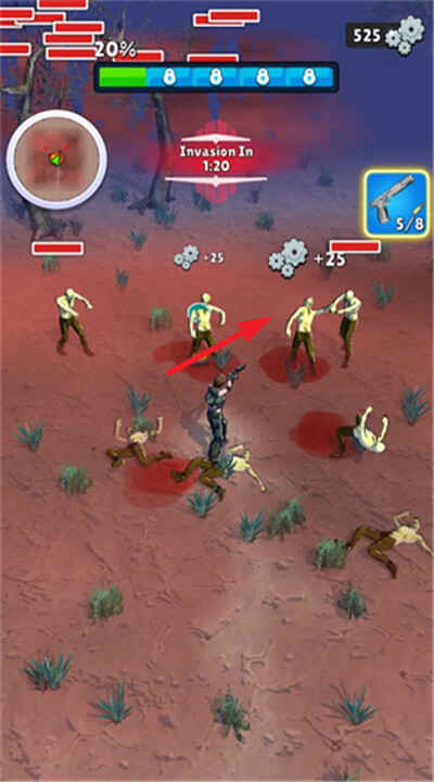 1. 看到僵尸就别犹豫,迅速开枪,血量清零后它们就彻底倒下了。