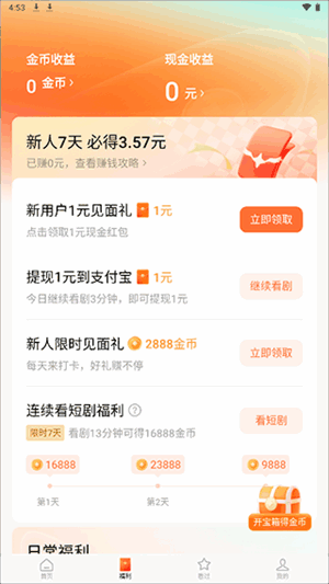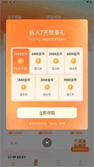1、新用户进行应用的福利页面can领取到7天登录礼