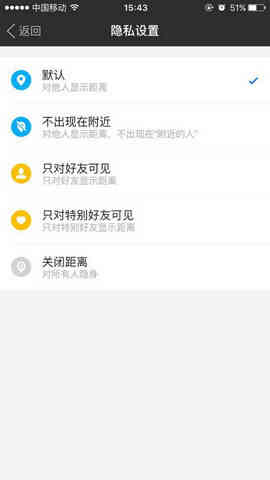 4、只对特别好友可见:只对特别好友显示距离和最近刷新时间;