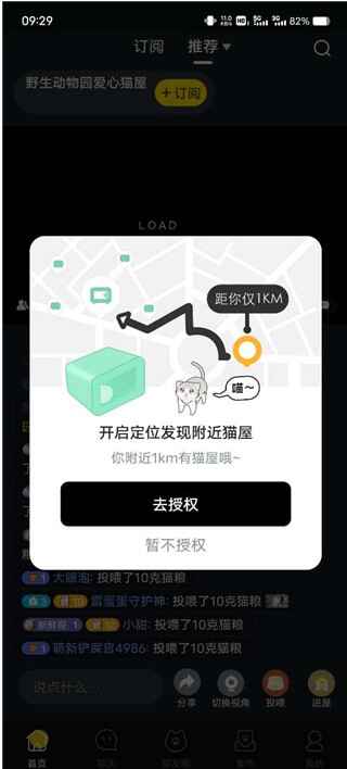 1、打开哈啰街猫APP,授予权限,开启定位,查看(kan)附近猫屋