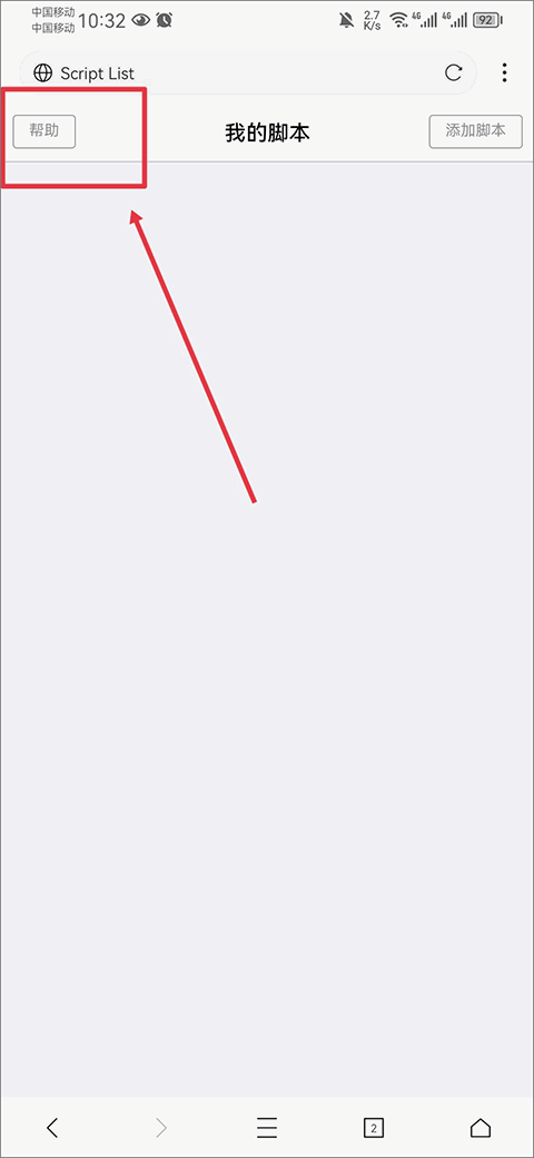 4、在我的脚本中点击左上角帮助