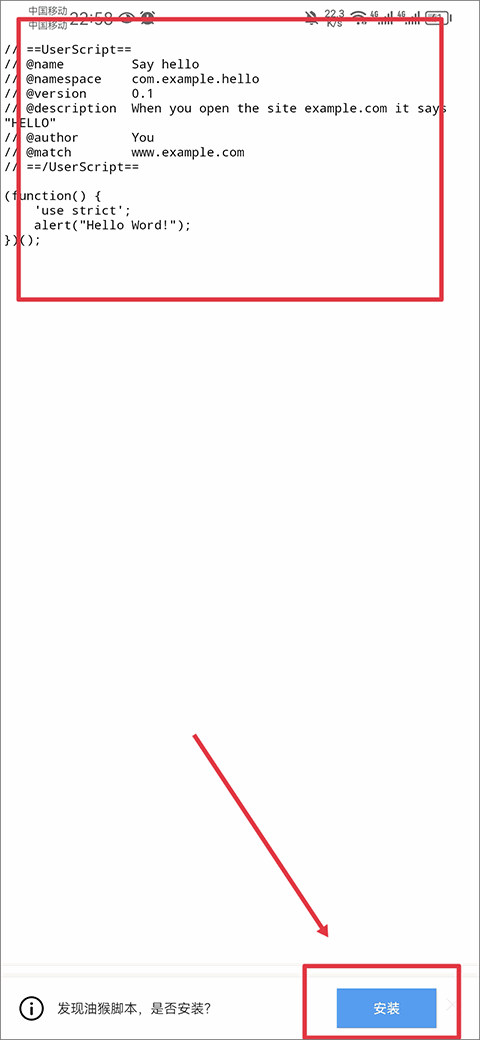 7、进入后就会显示脚本代码,你可以选择复制脚本代码添加安装,也可以直接点击下方弹出的安装即可
