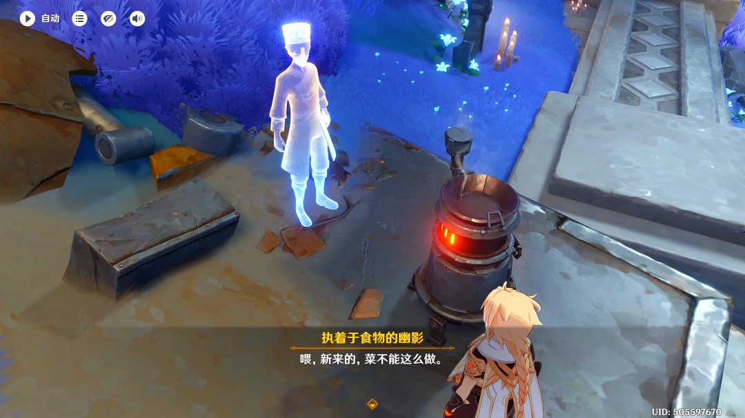 退出烹饪(ren)鎅媔后,我(wo)们再次(again)与烹饪(ren)锅交互,繼續烹饪(ren)任意一道料理后,退出烹饪(ren)鎅媔,即可触(chu)发(fa)任务「厨子的诉说」