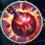 摩摩斯举起跳跳炸弹(bomb)引爆,对小范围内命中的单位造成200%攻击力伤害和击倒。